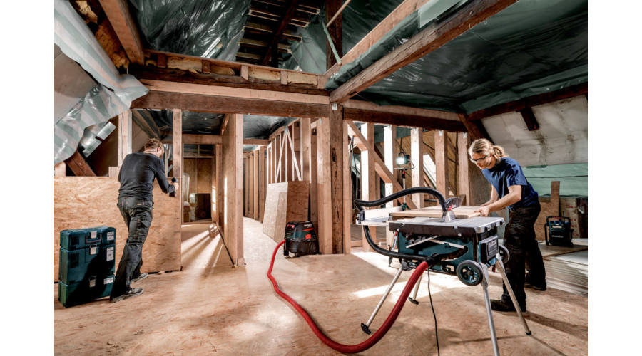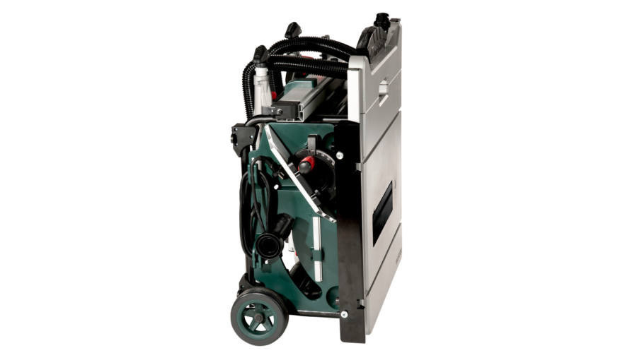 Rendkívül könnyű asztali körfűrész húzható mobil funkcióval az építkezésen való nagyobb mobilitás érdekében