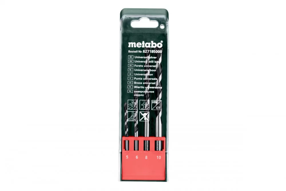 Hengeres szárú többcélú fúró váltakozó (nem ütő) felhasználásokra, Gyémántköszörült keményfém lappal és pozitív, agresszív vágószöggel., Ideálisan alkalmazható akkus fúrógépekben is, gipszkarton építkezési lapokon, gázbetonban, csempéknél, kerámián stb., Alkalmazható fában, fémben, műanyagban, téglában stb. végzett fúrásokhoz, 4 részes, műanyag dobozban, átmérő: 5/6/8/10 mm