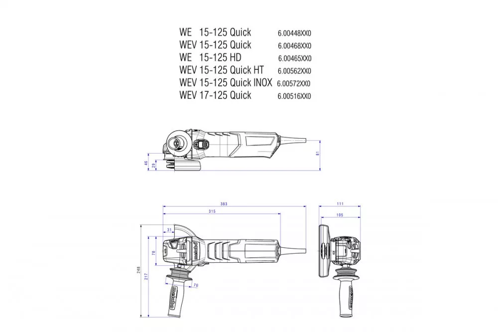 védőbura, Támasztó alátétek, M Quick szorítóanya, Metabo VibraTech (MVT) kiegészítő markolat
