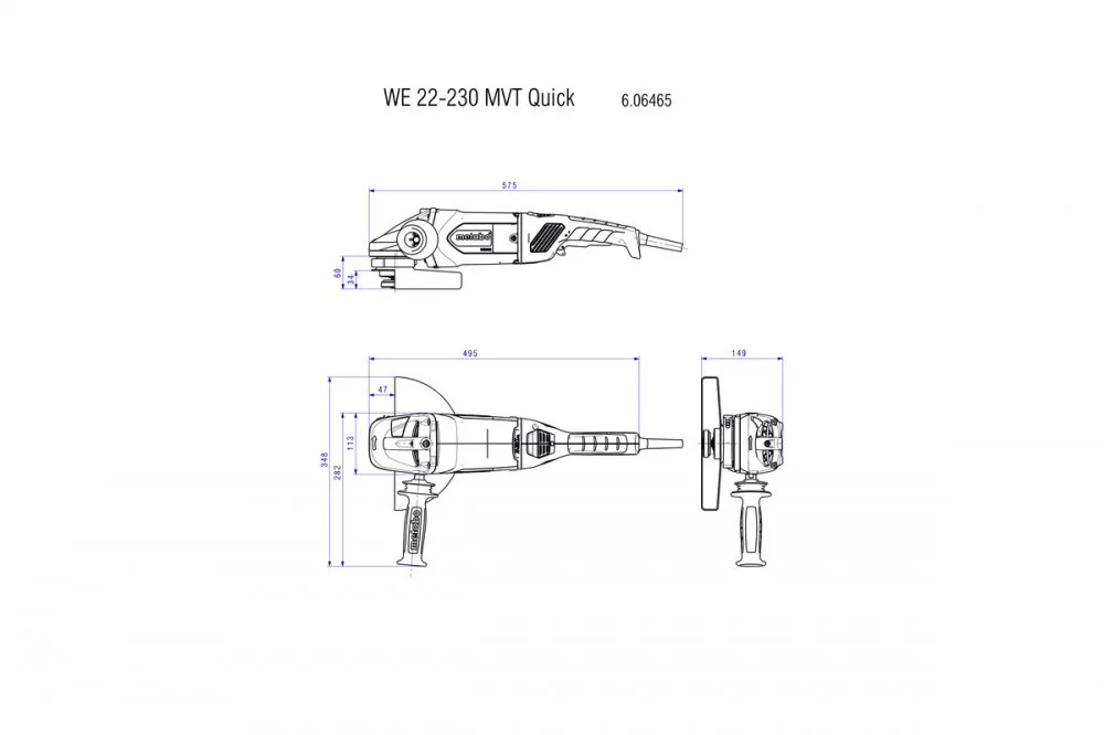 A fő markolat elforgatható és a kiegészítő markolat 3 helyzetben felszerelhető az optimális markolati helyzet eléréséhez darabolás közben is
