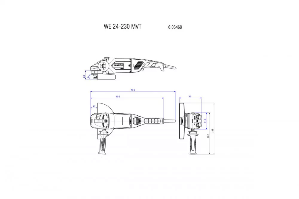 A fő markolat elforgatható és a kiegészítő markolat 3 helyzetben felszerelhető az optimális markolati helyzet eléréséhez darabolás közben is