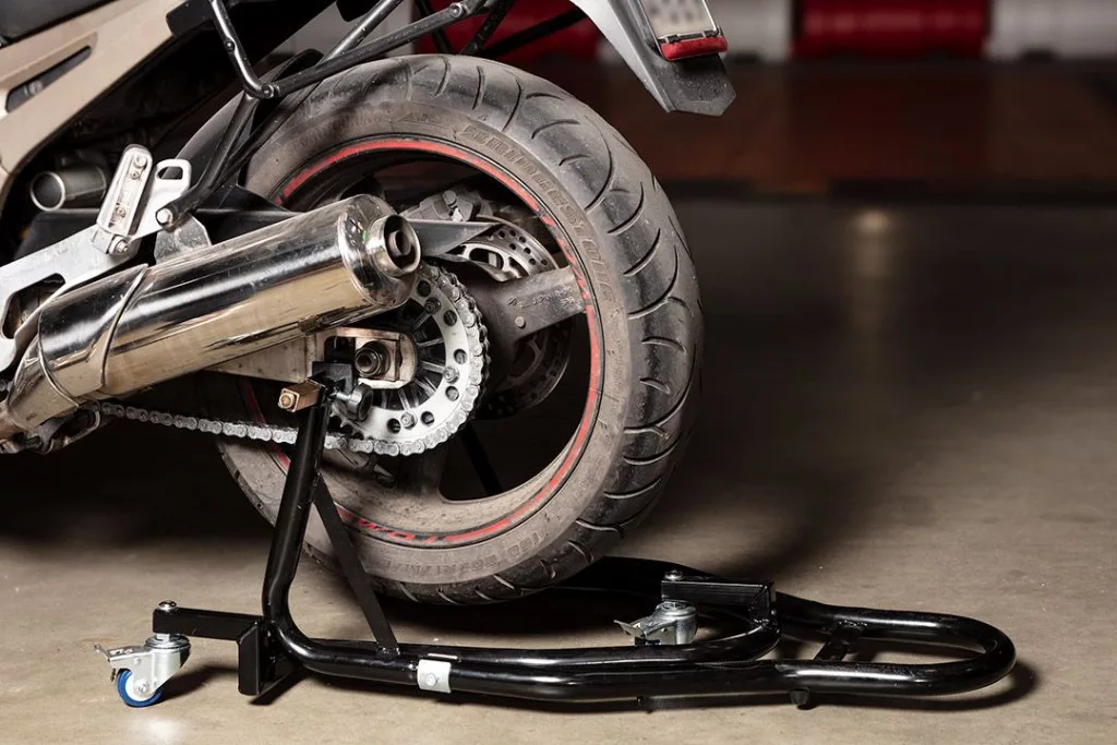 NEO 10-604 Motorkerékpár állvány, görgős, hátsó kerékhez. 250 kg maximális terhelhetőség jellemzi, 9,5 kg saját tömeggel. Ajánlott a motorkerékpár a kívánt helyre történő mozgatásához és áthelyezéséhez, nagyobb erőkifejtés alkalmazása nélkül. A maximális emelési magasság 360 mm (a keréktengelytől számítva), a fogantyú magassága pedig 830 mm. A csövek átmérője 32 mm, míg a hátsó tengely szélességi tartománya 210 és 350 mm között van. A NEO TOOLS motorkerékpár-állvány 50 mm átmérőjű kerekekkel van felszerelve, amelyek reteszelő mechanizmussal rendelkeznek. Könnyű tárolást, valamint a jármű szervizelését vagy karbantartását teszi lehetővé. A porszórt fémszerkezet tartósságot és esztétikus megjelenést biztosít. Az összeszereléshez kulccsal és csavarokkal együtt kínáljuk.