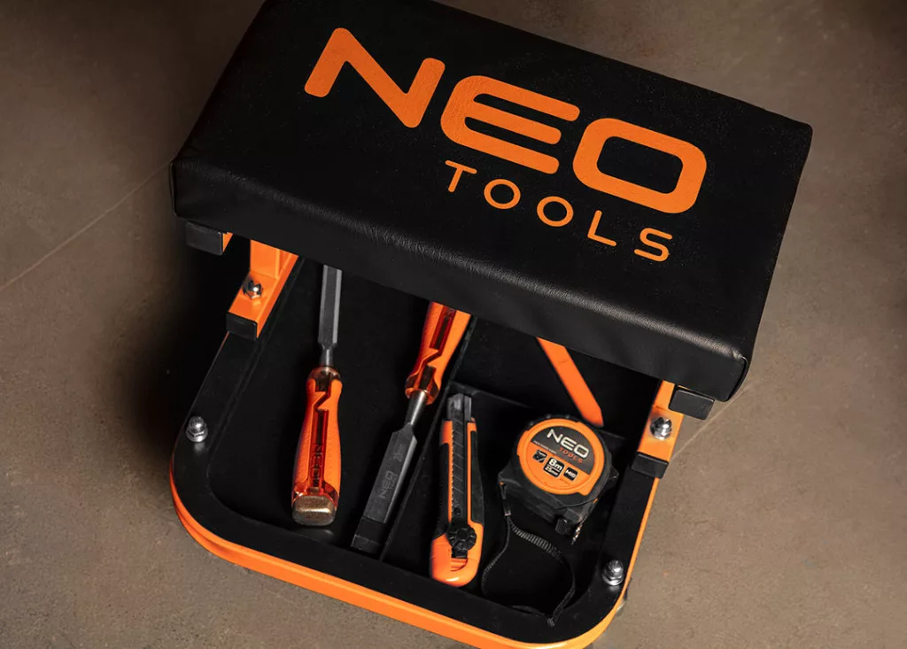 NEO 11-604 Szerelőszék, szerszámos polccal. A robusztus zsámoly porszórt acélszerkezettel és lángálló anyaggal bevont üléssel - megfelelő tartósságot és biztonságot biztosít. Maximális terhelhetősége 136 kg, saját súlya mindössze 4,5 kg. A vázhoz csavarozott 4 darab 360 fokban elforgatható görgővel rendelkezik, amelyek mindegyike 2,5" átmérőjű. A NEO TOOLS műhelyszék egy stabil polccal van felszerelve a szerszámok könnyebb elkülönítése érdekében. Ergonomikus formájának köszönhetően hosszan tartó munkavégzés közben is kényelmet biztosít. Ajánlott a különböző típusú javítási feladatok elvégzéséhez. Hobbi szerelők és szakemberek számára egyaránt hasznosnak bizonyul.