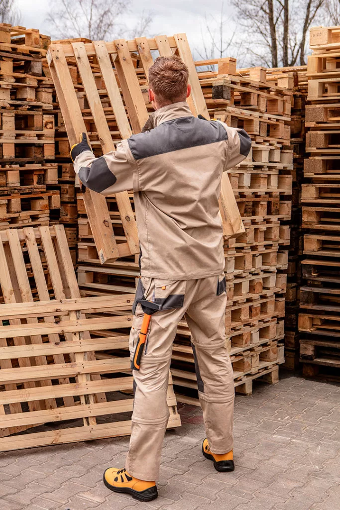 Munkadzseki, 2in1, 100% pamut, 180 g/m², erősítésekkel a kopásnak kitett részeken, az újjak levehetők, így munkaruha mellényként is használható, CE tanúsítvány, EN ISO 13688:2013