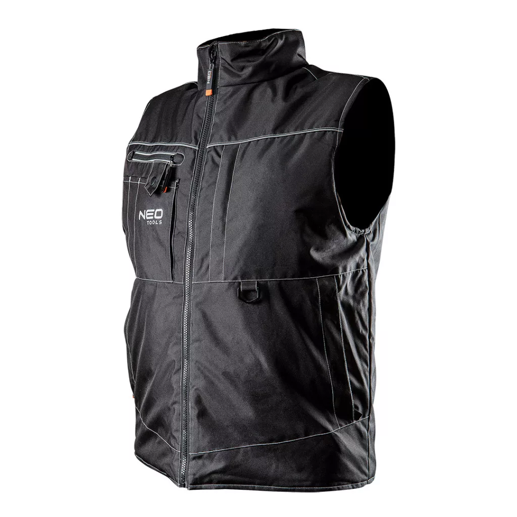 A NEO munkamellény praktikus megoldás mindenféle munkához, úgy a szakemberek, mint a barkácsolók részére. Strapabíró, könnyű Oxford szövetből készült ami bélelt ezáltal jól melegen tartja viselőjét. Fényvisszaverő elemek biztosítják láthatóságát. A zsebek nagy terhelést is kibírnak, elférnek benne a munka közben szükséges szerszámok. A belső zsebnek és a többfunkciós akasztónak köszönhetően a szükséges dolgokat viselője mindig magánál tarthatja. A CE tanúsítvány igazolja az európai biztonsági normáknak való megfelelést. A NEO márka a professzionális igényeket is kielégíti.