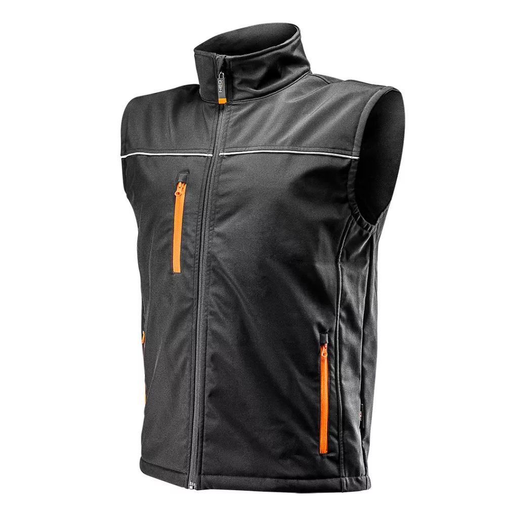 NEO softshell munkamellény nagyon praktikus megoldás mindenféle munkához, úgy a szakemberek, mint a barkácsolók részére.Könnyű viszont tartós Softshell anyagból készül, ami biztosítja a ruha lélegzését és vízállóságát. A fényvisszaverő elemek biztosítják viselője láthatóságát. A zsebek nagy terhelést is kibírnak, elférnek benne a munka közben szükséges szerszámok. Ezen túlmenően az összes zseb cipzározható. A termék EN ISO 13688:2013 szabvány szerinti kivitelezése és az európai tanúsítványa minőségének garanciája. A NEO márka a professzionális igényeket is kielégíti.