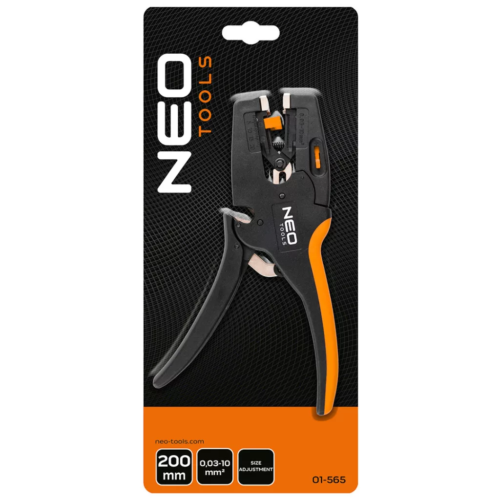 A NEO TOOLS 01-565 0,03 - 10,0 mm-es automata szigetelőgépének hossza 200 mm. Nikkelezett acélból készült. Munkatartománya 0,03 és 10 mm² között van. Kétkomponensű fogantyúval és praktikus nyomásbeállítással rendelkezik. Ez egy elülső lehúzó, amelyet a csatlakozószekrényekből és kapcsolóberendezésekből kiálló vezetékek megmunkálására terveztek.