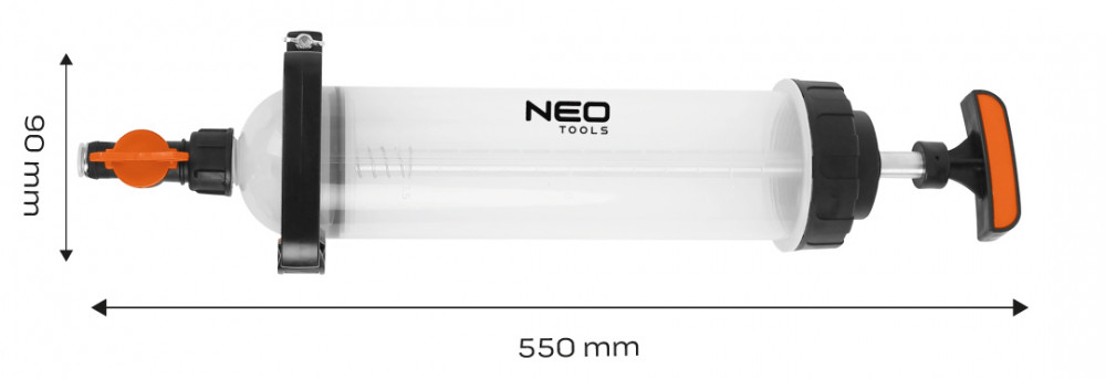 A NEO márkájú fecskendő kartondobozban kerül forgalomba, és ideális a működési folyadékok eltávolítására. Sokoldalúságának és robusztus kialakításának köszönhetően felbecsülhetetlen értékű eszköz a műhelyben vagy a garázsban.