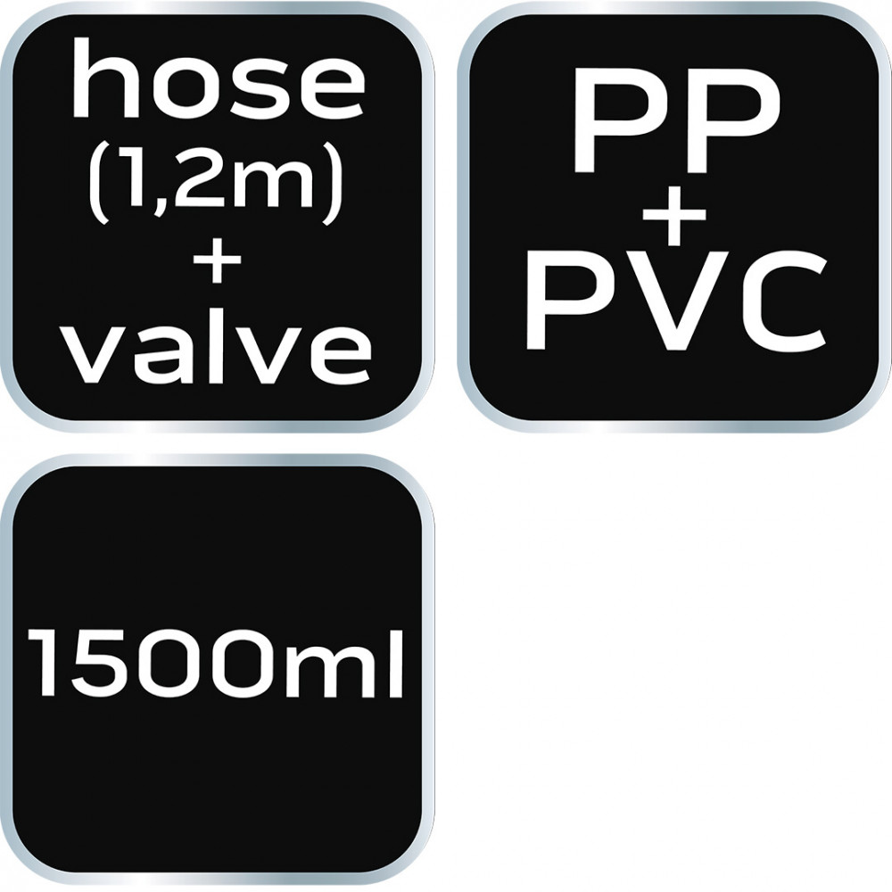 A NEO 10-807 1500 ml-es folyadékfecskendője nélkülözhetetlen eszköz mind a barkácsolók, mind a professzionális felhasználók számára. Tartós PP+PVC anyagból készült, így hosszú időn keresztül biztosítja a megbízhatóságot és a tartósságot. A készletben két 20 cm és 21,5 cm hosszúságú hosszabbítót talál, amelyek lehetővé teszik, hogy a fecskendőt különböző feladatokhoz igazítsa.
