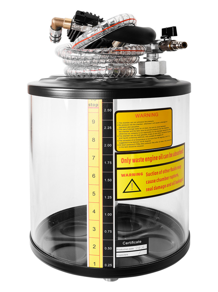 A nagy űrtartalmú tartály és a további lehetőség a régi olaj kiszívására az olajteknőből, anélkül, hogy ki kellene csavarni a leeresztőcsavart, valamint a praktikus ellenőrző tartály - mind hozzájárulnak a termék nagy népszerűségéhez a garázsokban és szervizekben.