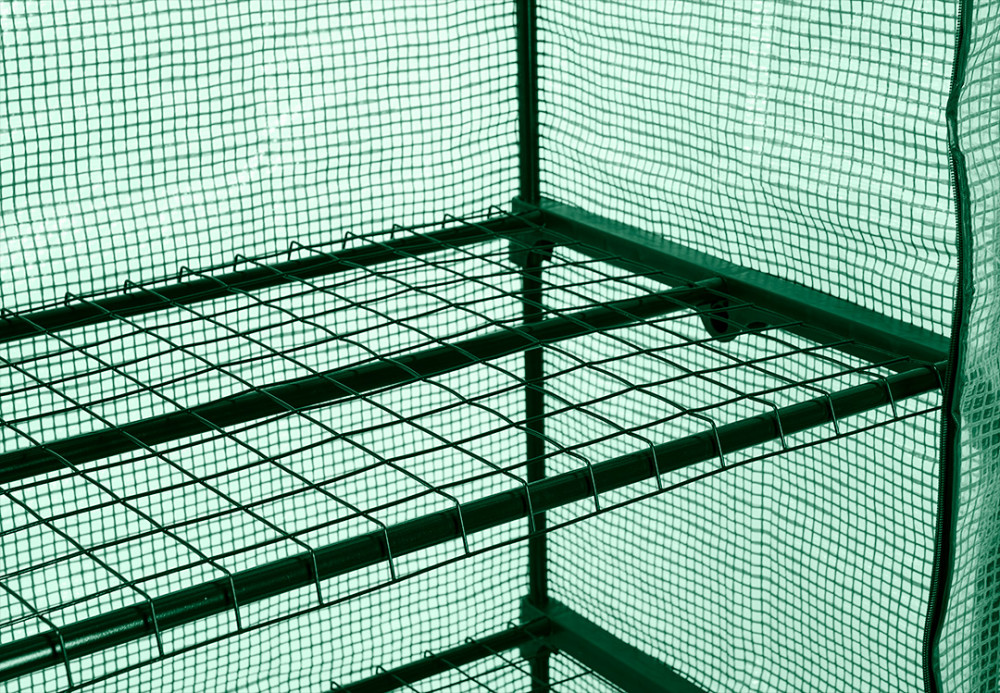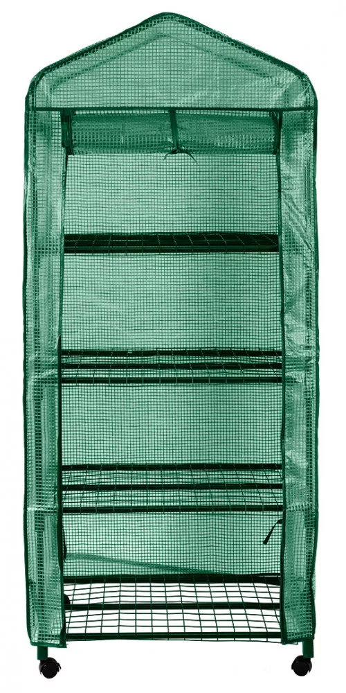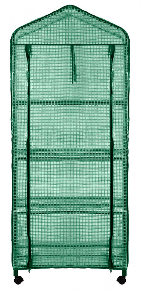 Növényház 69 x 49 x 160 cm, PE fólia, fémszerkezet, kerekek 15-903 A NEO TOOLS egy összecsukható, univerzális növényház, amelyben sikeresen lehet gyógynövényeket vagy zöldségnövényeket termeszteni. Méretei 69 x 49 x 160 cm-esek. Porszórt fémszerkezetből és 135 g-os PE-fóliából készül. Cipzárral zárható. Négy polccal és 49 x 138 cm-es elülső nyílással rendelkezik. A NEO TOOLS üvegházban lehetőség van az elülső fal felhajtására az öntözéshez vagy a növények ellenőrzéséhez. Az egyszerű és gyors összeszerelésnek köszönhetően könnyen mozgatható és tárolható. Az üvegház a négy 360 fokos kerekének köszönhetően mobilis. Közülük kettő fékkel rendelkezik, amely az üvegházat a kívánt helyen tartja.