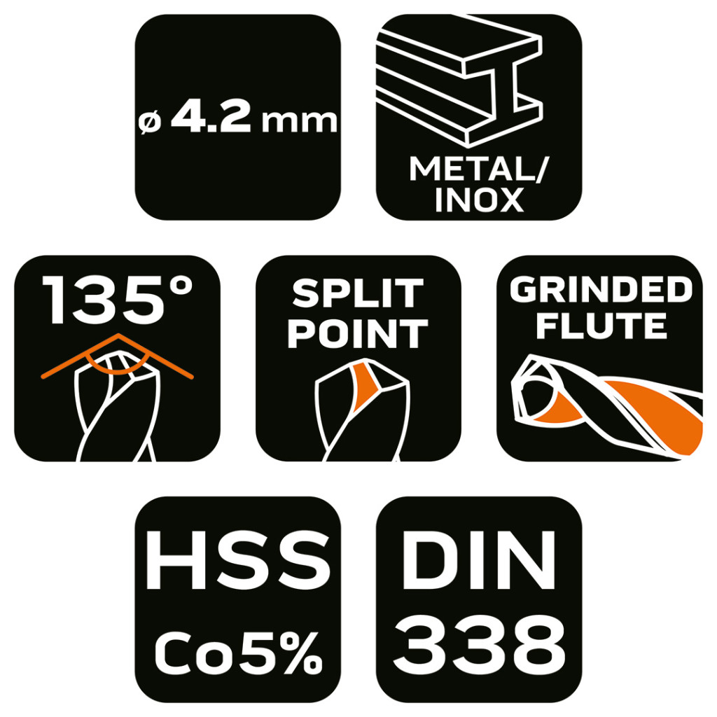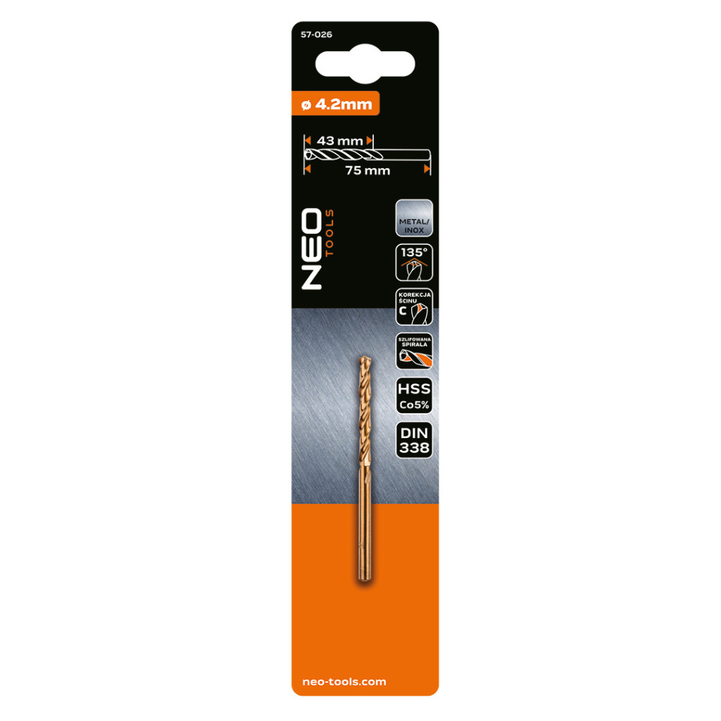 NEO Tools 57-026 Csigafúró HSS-Cobalt 5% 4.2mm, NEO Tools