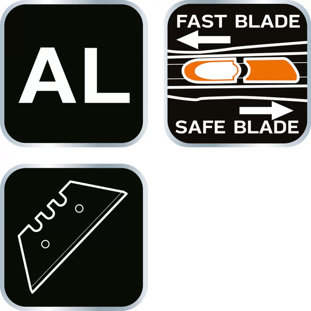 NEO Tools 63-704 Trapézpengés kés, biztonsági, rugós pengevisszahúzóval, alu házas