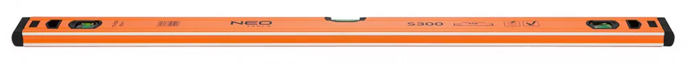 Az S 300 alumínium vízmérték, a NEO-tól egy csúcskategóriás szintező 3 libellával (45, 90 és 180 fok). A kínált modell 51,5x20,5x800 mm-es méretekkel rendelkezik. Profilvastagsága 1 mm, sűrűsége pedig 0,395 kg/m. A libellák pontossága 0,029°=0,5 mm/m. A szerszám alumíniumból készült. A szerkezet 2 ütésgátló végdugóval van ellátva. Szakembereknek és barkácsolóknak ajánlott.