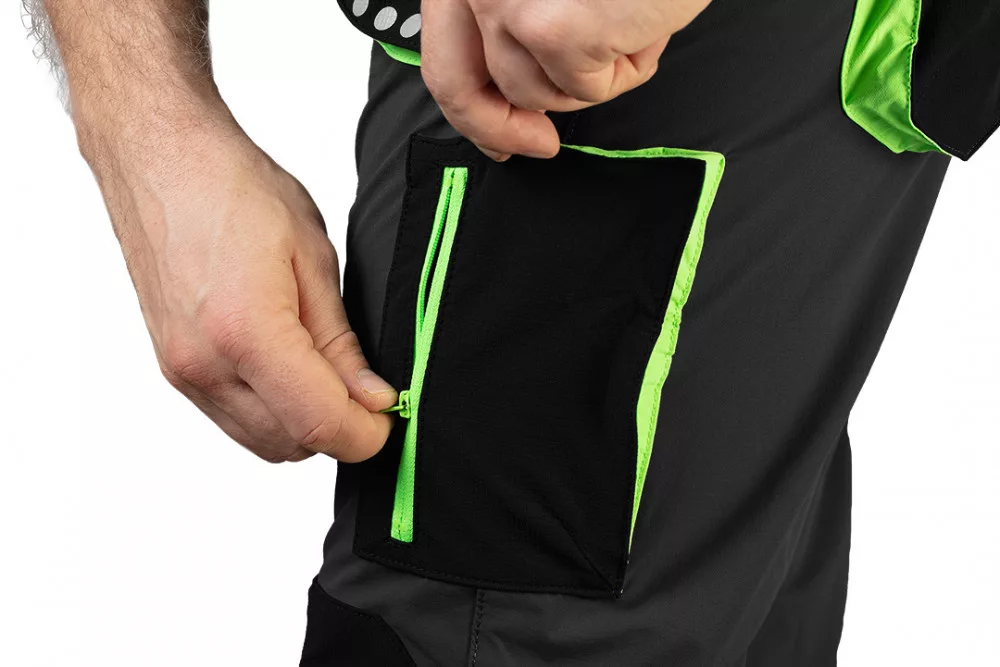 A nadrágok a térdeken és a zsebeken Cordura Ripstopból készült kiegészítő megerősítésekkel vannak ellátva. A profilozott térd lehetővé teszi a viselő számára, hogy lehajoljon vagy leguggoljon anélkül, hogy akadályozná a mozgást. A többfunkciós és tágas zsebek viszont lehetővé teszik a kisebb szerszámok, telefonok vagy dokumentumok tárolását. A NEO márkájú munkaruházat belső névtáblával rendelkezik a munkahelyi gyors azonosításhoz, valamint műanyag csattal és dombornyomott logóval ellátott pamutövvel a jobb funkcionalitás érdekében. A fényvisszaverő zónák szürkületkor vagy sötétedés után gondoskodnak a biztonságról.