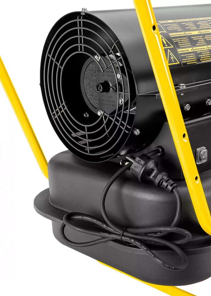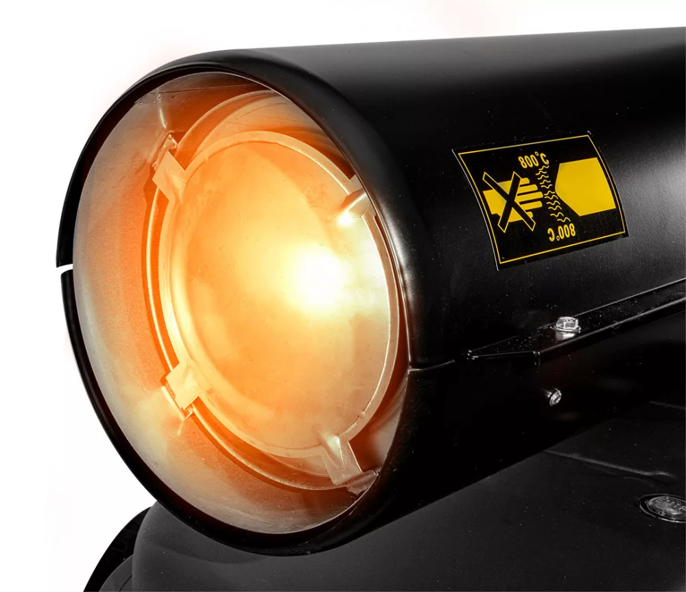 Afüstcsöves olajfűtő 20 kW 90-086 NEO egy hordozható hőforrás kerekekkel a kényelmesebb szállítás érdekében, amely hasznos műhelyek, gyártócsarnokok, nagy üzletek, építkezések vagy garázsok fűtésére. Nem szennyezi a helyiséget a füstgázok kényelmes, csövekbe történő elvezetésének köszönhetően. A 20 kW-os egységet 630 m3/h légáram jellemzi.