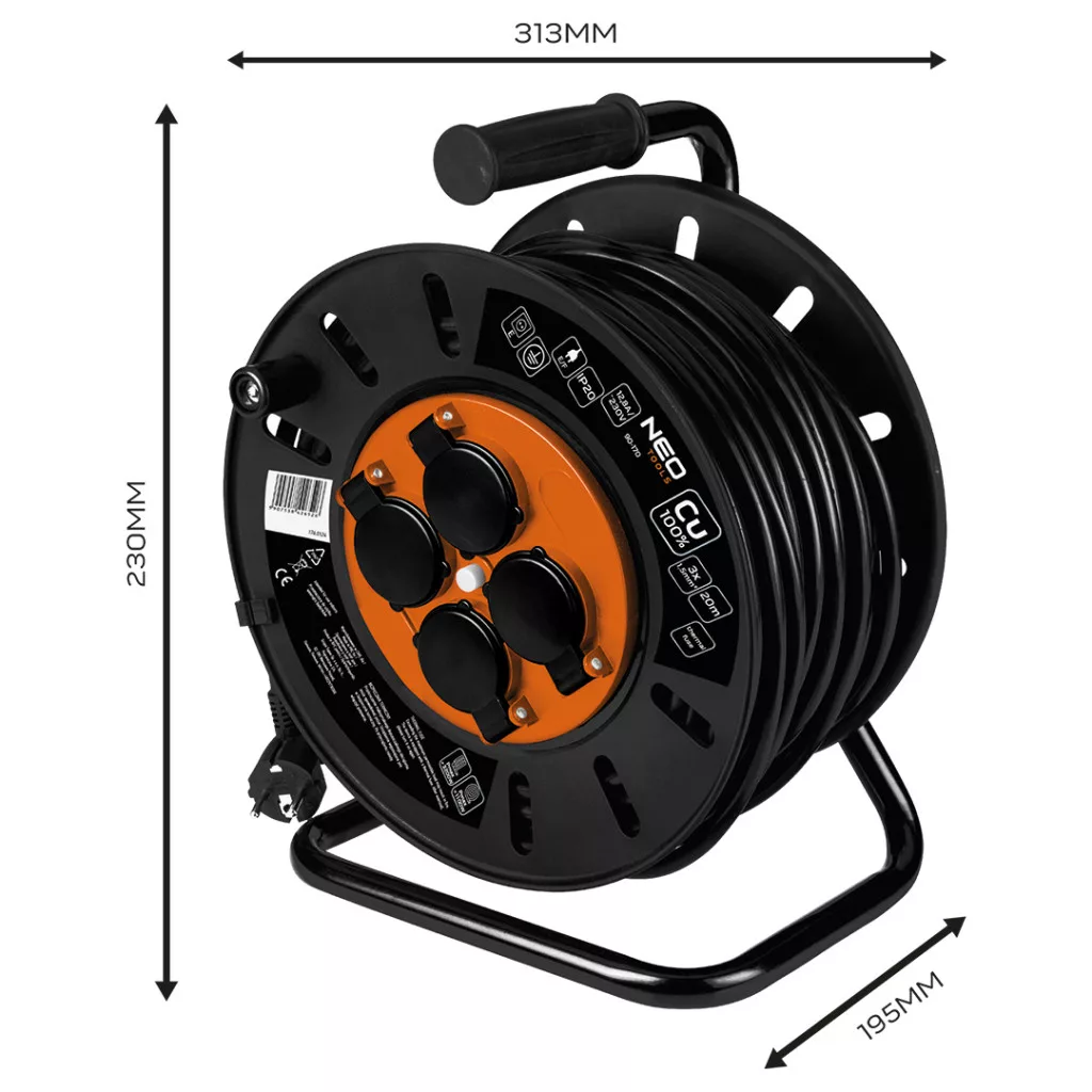 A NEO TOOLS tekercses hosszabbító kábel tehát nélkülözhetetlen eszköz mindazok számára, akiknek megbízható és biztonságos elektromos hálózat hosszabbításra van szükségük, akár otthoni, akár professzionális környezetben; lehetővé teszi az elektromos készülékek csatlakoztatását távolabbról, az áramkimaradás és a biztonság veszélye nélkül.