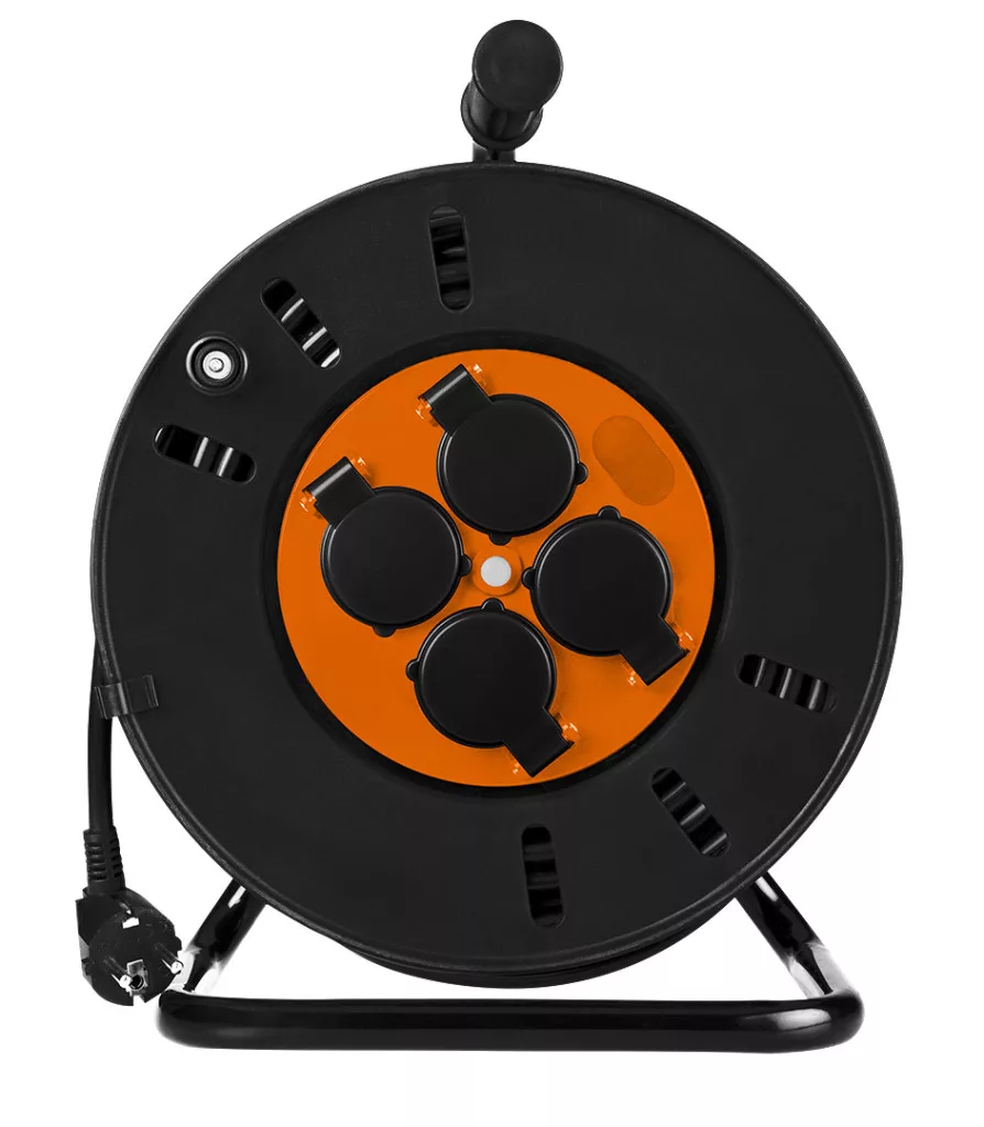 A 100% rézhuzalok használatának köszönhetően a felhasználó számíthat az áramvezetés nagy hatékonyságára és az energiaveszteségek minimalizálására. A gumírozott hordozófogantyú, az aljzatburkolatok és a műanyagdobos fémkeret nemcsak a szállítást és a használatot könnyíti meg, hanem biztosítja a tartósságot és a mechanikai sérülésekkel szembeni ellenállást is. Az E/F típusú dugó és az E típusú aljzat a hosszabbítót a legtöbb európai aljzatrendszerrel kompatibilissé teszi.