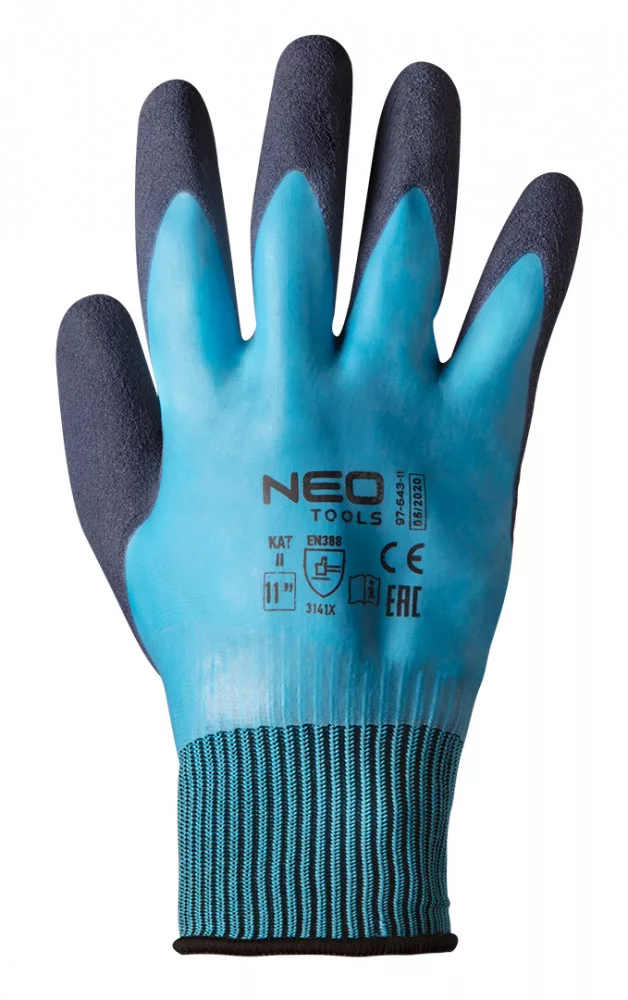 NEO Tools 97-643-11 Munkakesztyű, latex bevonatú poliészter (2 rétegű), 3141X, 11"