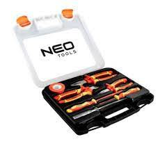 NEO 7 db-os fogó-csavarhúzó szerszámkészlet ,1000 V. Max. 1000 V feszültség alatti használatra minősített. A kiváló minőségű, indukciósan edzett króm-vanádium acél pofák biztosítják az erős fogást és a hatékony vágást. Az ergonómikus bimateriál markolat növeli a használat komfortját.