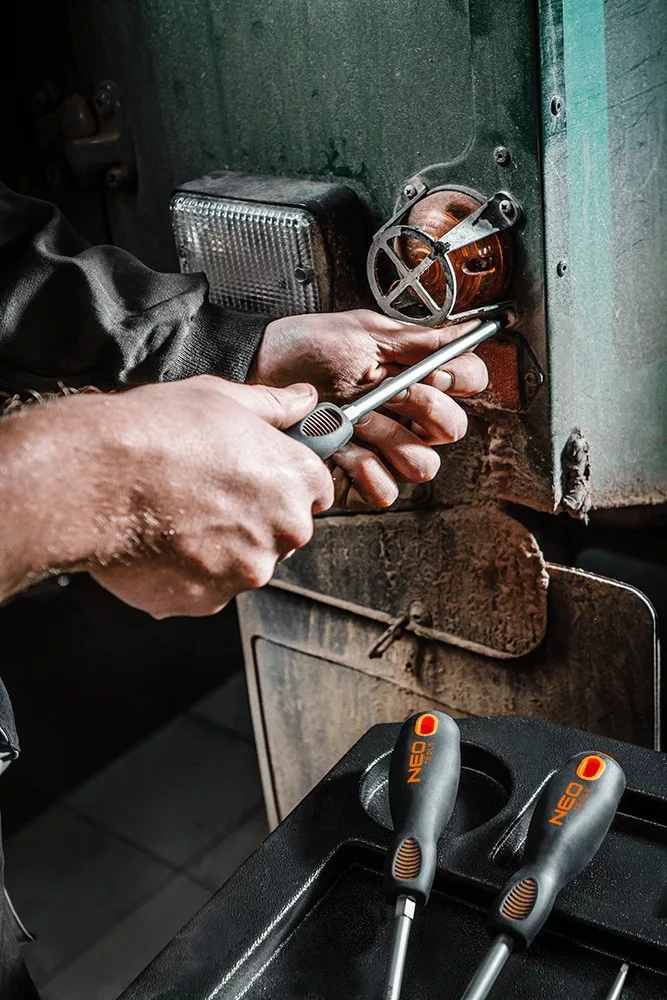 NEO PH kereszt csavarhúzó. A csavarhúzó szára kivételesen ellenálló S2. A csavarhúzó hegy hőkezelésnek lett alávetve, így megfelelő, 56 HRC keménységet és hajlítószilárdságot ért el. A csavarhúzó hegye mágneses. A markolat három élű hasáb alakja a kialakított hüvelyktámasszal csökkenti a kéz megterhelését munka közben, és megkönnyíti a megfelelő forgatónyomaték elérését. A bimateriál markolat nem csúszik ki a kézből, ellenálló vegyszerek, kenőolajok és zsírok hatásának. A szerszám minőségét bizonyítja a TÜV tanúsítvány és a gyártó által nyújtott 25 éves jótállás. A NEO márka a professzionális igényeket is kielégíti.