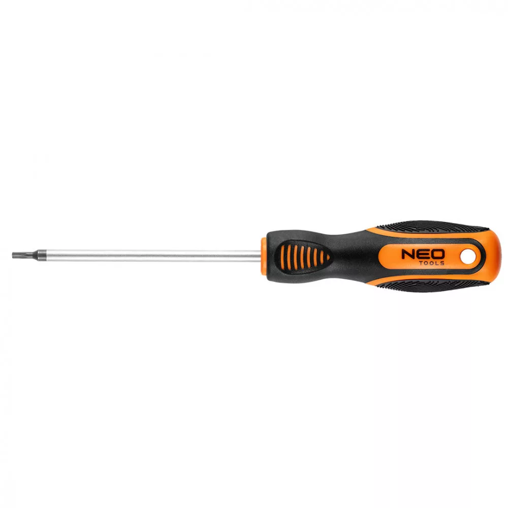 A NEO Torx csavarhúzó kiválóan alkalmas szerelési, barkácsolási munkákra. Hegye nagy ellenállóképességű, a szerszámnak hosszú élettartamot biztosító króm-vanádium acélból készült. A mágneses hegy megkönnyíti a szerszámmal végzett munkát Az ergonómikus, csúszásmentes anyaggal bevont műanyag markolat biztosítja a kényelmet és a biztonságot a munkavégzés során. A NEO márka a professzionális igényeket is kielégíti.