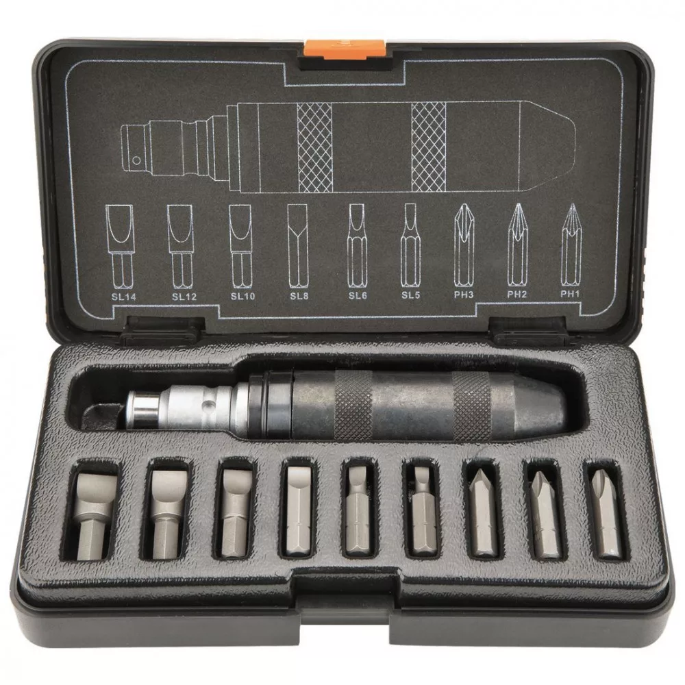 NEO üthető csavarhúzó klt. 10 db‑os, ebben 9 db népszerű típusú csavarhúzó bit (lapos, kereszt), valamint üthető csavarhúzó markolat. Az S2 acélötvözet alkalmazása a hegyekben jelentősen megnöveli élettartamukat. A markolat nagy ellenállóképességű króm-vanádium acélból készül. A készlet praktikus műanyag hordtáskába van csomagolva. A szerszám minőségét bizonyítja a TÜV tanúsítvány és a gyártó által nyújtott 25 éves jótállás. A NEO márka a professzionális igényeket is kielégíti.