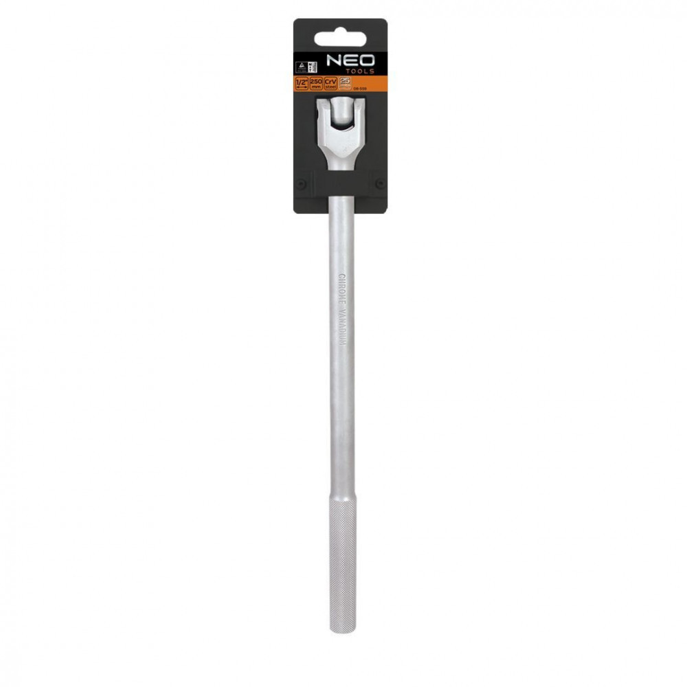 NEO ¾"-os, 510 mm hosszú csuklós markolat. Nagy ellenállóképességű króm-vanádium acélból készül. A termék kiváló minőségét és megbízhatóságát bizonyítja a TÜV Rheinland tanúsítvány. A NEO márka a professzionális igényeket is kielégíti.