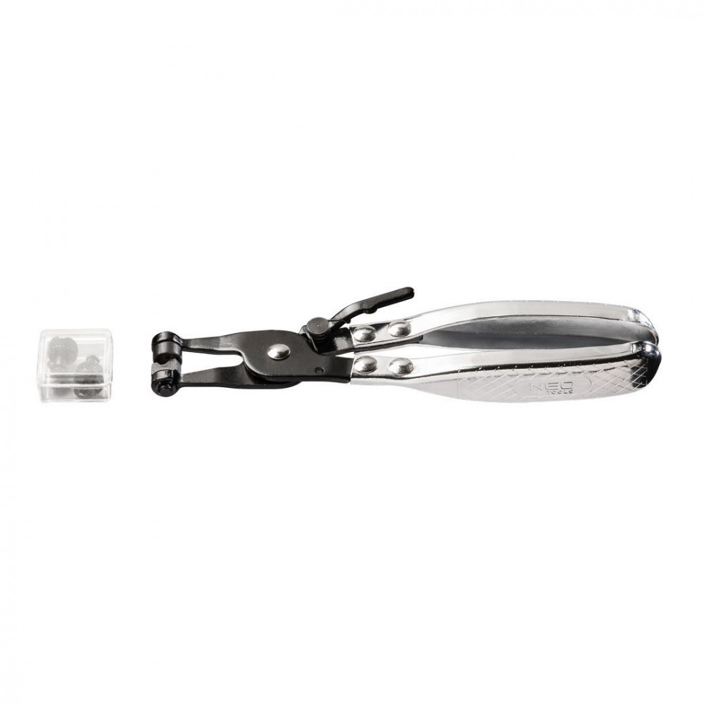 A NEO rögzítőkaros tömlőbilincs fogónak különleges, tömlőbilincsek szereléséhez kialakított pofái vannak, valamint rögzítőkarja is van, amellyel a bilincset a kívánt helyzetben meg lehet tartani. Hosszú élettartamot biztosító, szilárd acélból készül. A NEO márka a professzionális igényeket is kielégíti.