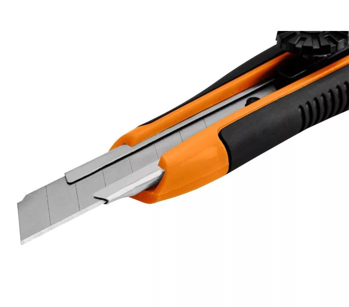 NEO törhető pengés kés, 18 mm széles pengékkel használható. Kiválóan alkalmas szerelési, barkácsolási munkákhoz. A fém pengevezető hosszú élettartamot biztosít. Az ergonómikus, csúszásmentes anyaggal bevont műanyag markolat jól fekszik a kézben, és biztosítja a kényelmet és a biztonságot a munkavégzés során. A NEO márka megfelel a szakemberek elvárásainak.
