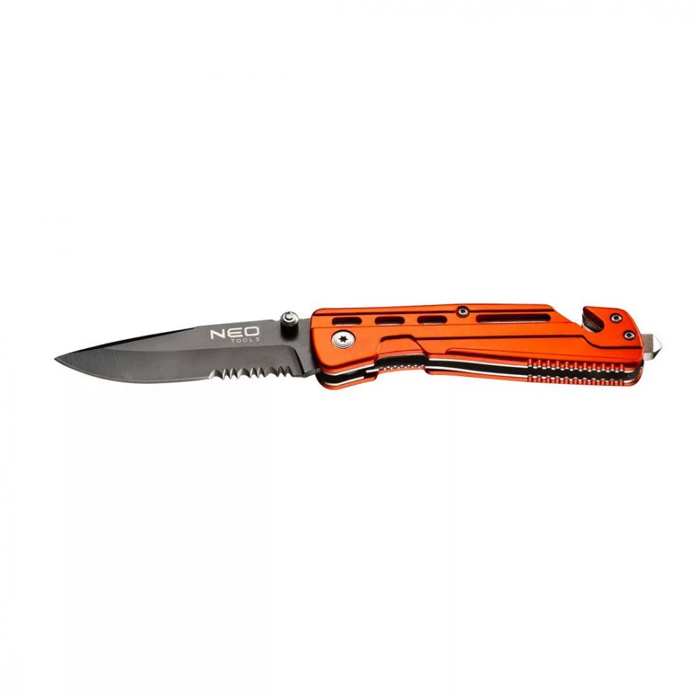 NEO Tools 63-026 Összecsukható Kés, 11,5Cm, Retesszel És Szíjvágó Pengével, Penge: 8.5 Cm