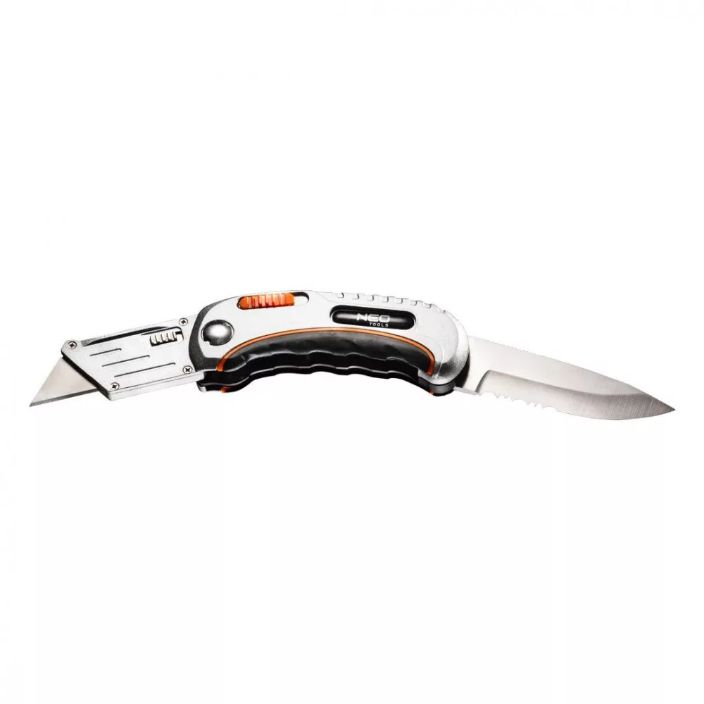 NEO Tools 63-710 Trapézpengés Összecsukható Sniccer + Kés, 5 Pengével