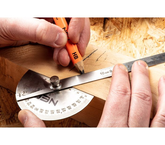 A NEO 72-320 szögmérő 100 mm-es vonalzóval, rozsdamentes acél 72-320 a 0-180° közötti szögek mérésére szolgáló eszköz. A vonalzó 0 és 100 mm közötti méréseket tesz lehetővé. Rozsdamentes acélból készült. Lehetővé teszi a mérések elvégzését mechanikai munkák és barkácsolás közben. A NEO márka szerszámait szakemberek és mások számára kínálják otthoni használatra.
