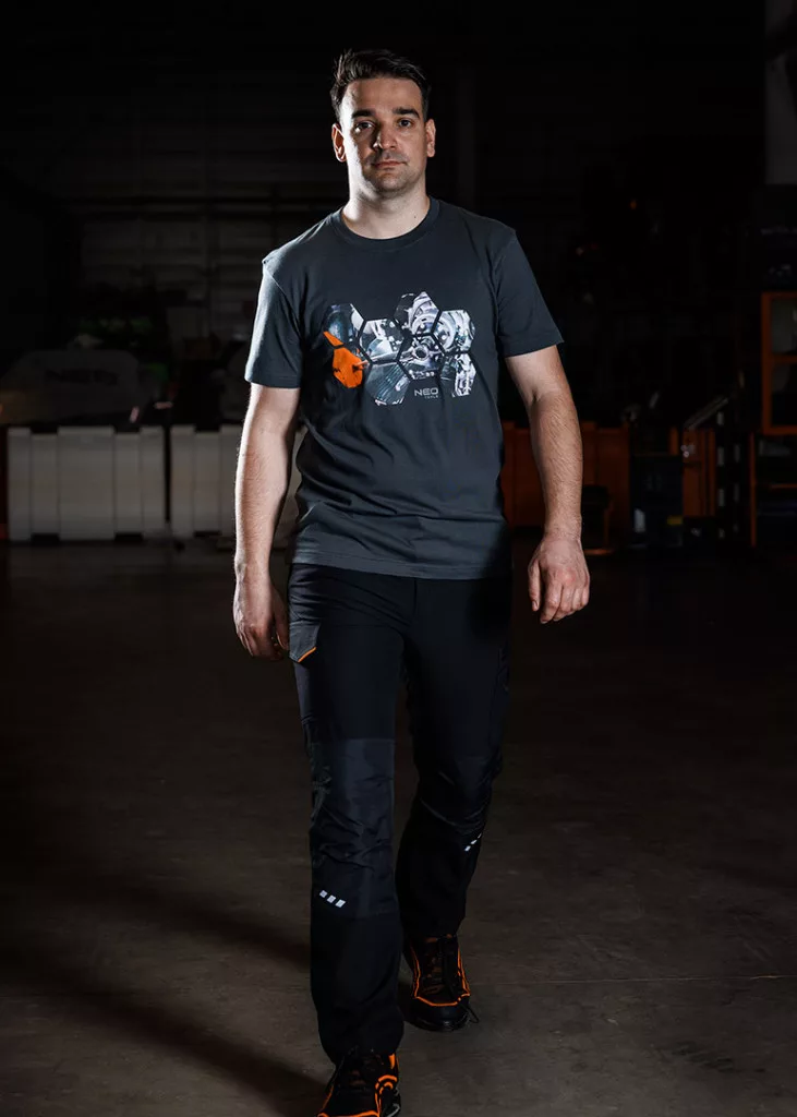 NEO 81-295-2 MUNKÁSNADRÁG, MIX&MATCH, 4 IRÁNYÚ SZTRECCS, 230G/M2, FEKETE-NARANCS. Egy nadrág a Mix&Match vonalból, amely arra ösztönzi, hogy a kiválasztott munkaruházat elemeit a saját ízlése szerint állítsa össze. A nadrág tartós 4 irányú sztreccs anyagból készült, amely 92% poliészterből és 8% spandexből áll, súlya 230 g/m2. Fekete, praktikus színű, energikus narancs elemekkel. A dupla varrás, a térdvédőknek helyet adó térdmegerősítések, a lábszár alsó részén található megerősítések és a profilozott térdek hozzájárulnak e modell kivételes tartósságához és robusztusságához. A fényvisszaverő nyomtatásnak köszönhetően ideális a sötétedés utáni munkavégzéshez. A szerszámcsipesz és a névtábla viszont növeli a komfortot, és megkönnyíti a ruházat azonosítását a professzionális környezetben. A NEO TOOLS munkanadrág megfelel a CE EN ISO 13688:2013 szabványnak.