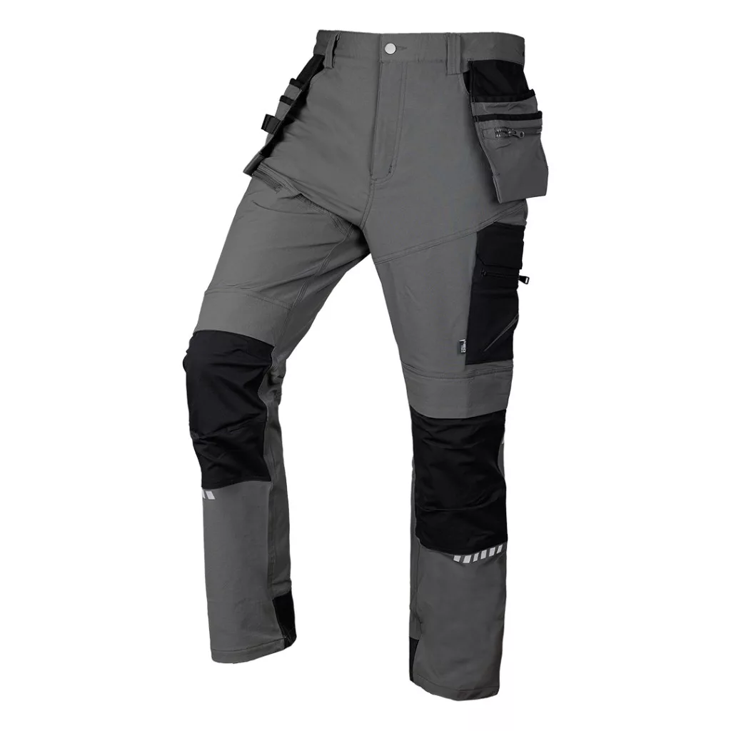 Neo 81-296-1 munkásnadrág, mix&match, 4 irányú sztreccs, 230g/m2, külső zsebekkel, cordura erősítésekkel, szürke-fekete.