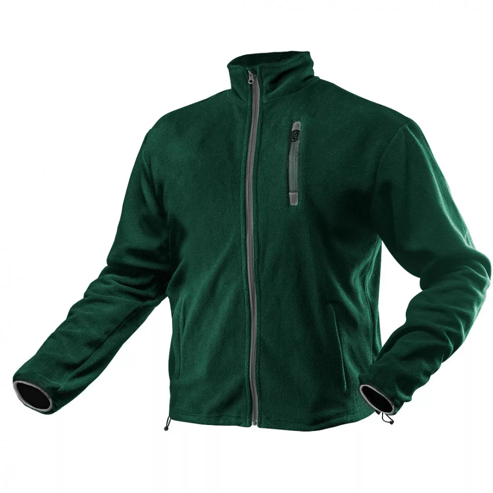 Fleece pulóver, zöld, XXXL méret 81-504-XXXL a NEO-tól, kiváló minőségű fleece anyagból, 300g/m2 tömeggel és 100% poliészter anyagösszetétellel. 3 cipzáras zsebbel rendelkezik - egy mellzsebbel és két oldalsó zsebbel, cipzáras zsebbel. A cipzáras elemek előtti kiegészítő állvédő és a hosszúkás hátrész kényelmesebbé teszi a viseletet. A pulóver állítható szegéllyel és elasztikus ujjrészekkel rendelkezik. A könnyű azonosítás érdekében névtáblával van ellátva. A NEO márkájú pulóver CE tanúsítvánnyal rendelkezik. Szakembereknek és barkácsolóknak egyaránt ajánlott a munkahelyen és azon kívül történő használatra.