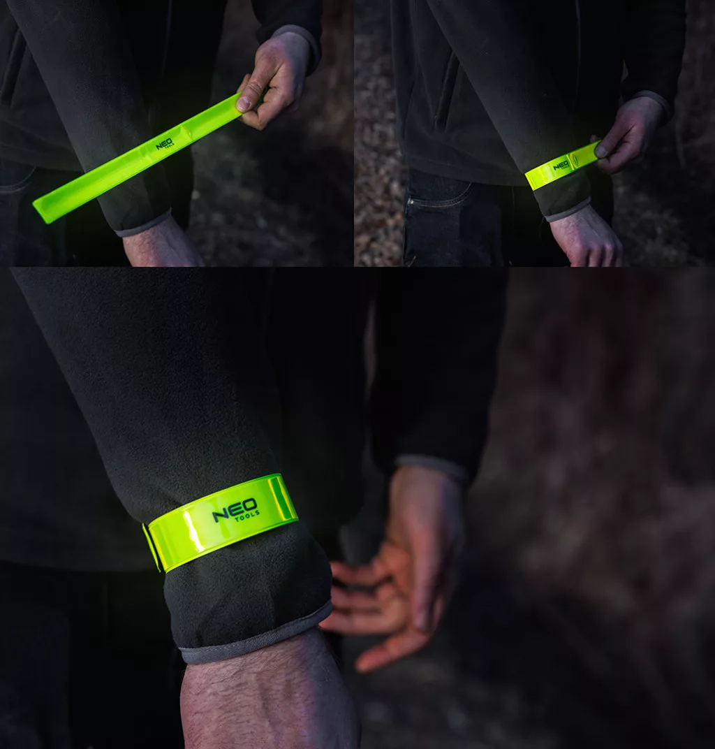 NEO 81-737 FÉNYVISSZAVERŐ SZALAG RUHÁZATRA, 3X40CM, TÉPŐZÁRAS, NEONZÖLD. A terméket 40 cm hosszúság és 3 cm szélesség jellemzi. Könnyen a csukló kerületéhez igazodik, így növeli a láthatóságot és a biztonságot sötétedés után. Felbecsülhetetlen értékű eszköz, amelyet mindig magával kell hordania.