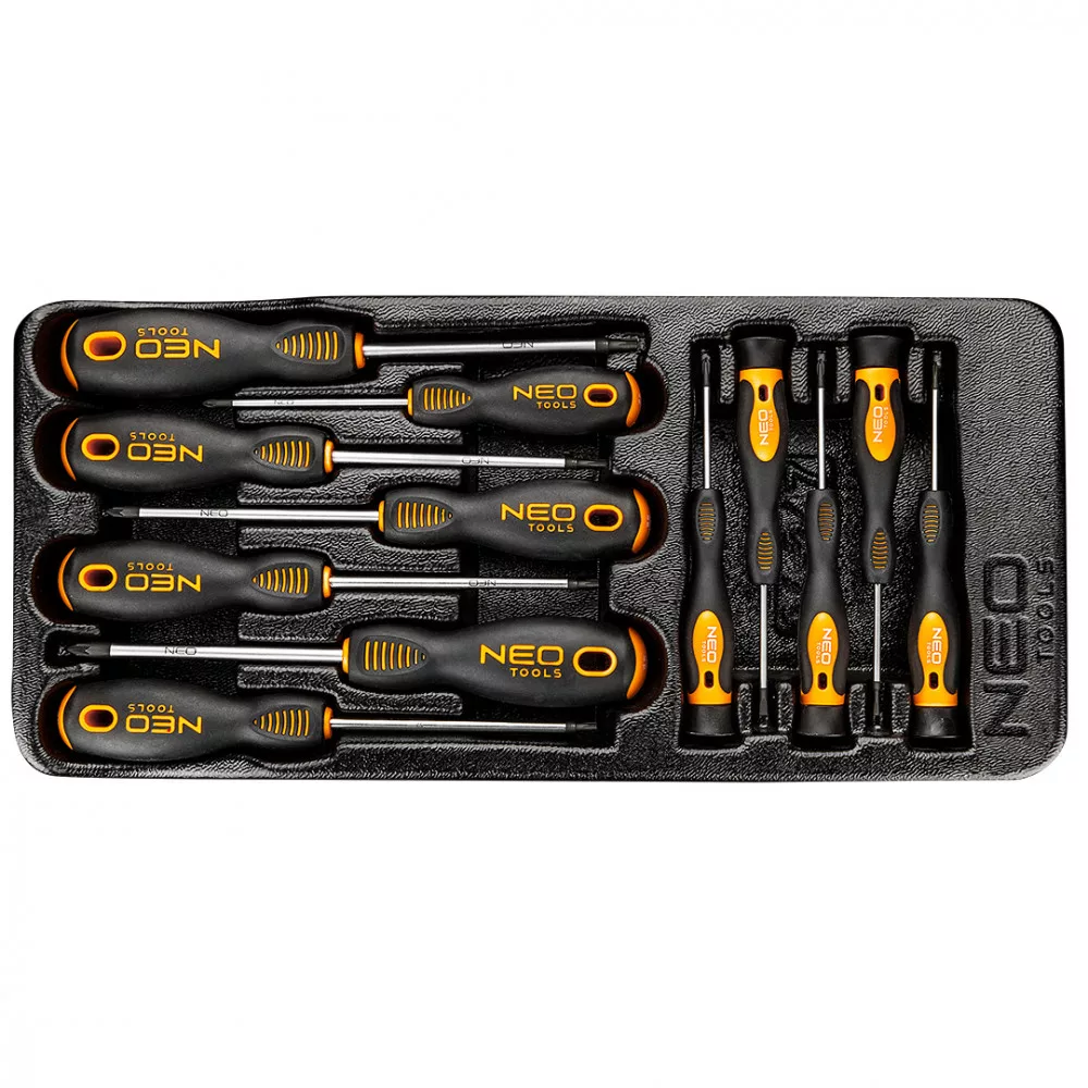 NEO Tools 84-247 Műszerész, Precíziós Csavarhúzó Készlet, Pz, Torx, 12Db, Műhelykocsitálcával