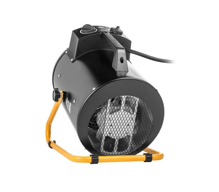 A 90-069 típusú elektromos fűtőelem hordozható hőforrás, amely olyan helyiségek fűtésére szolgál, mint műhelyek, garázsok, háztartások és üzletek. A készülék fűtőeleme rozsdamentes acélból készül, amely védelmet nyújt a túlmelegedés ellen. Az IPX4 vízállósági osztály lehetővé teszi a készülék használatát nedves és nedves csatlakozásoknál. A fűtőelem szigetelt műanyag fogantyúval rendelkezik a könnyű hordozhatóság érdekében. Porfestett fémház védi a készüléket a rozsda ellen. A melegítőt nagy hatékonyság jellemzi, kis lábnyom mellett. Jellemzők: teljesítmény 5kW, fűtőelem: rozsdamentes acél, állítható termosztát, állítható beállítási szög, védelem a túlmelegedés ellen, ventilátor, teljes fémház, erős és tartós szerkezet, szigetelt, biztonságos fogantyú, hordozható, szabadon álló.