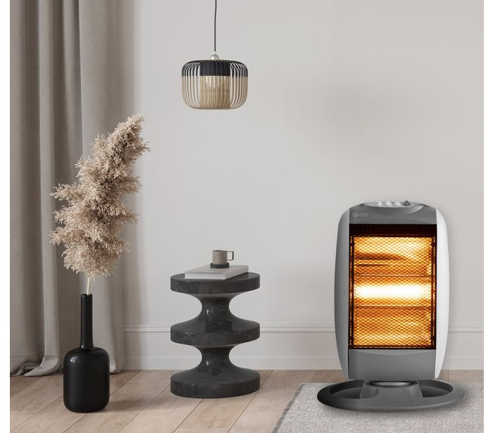A 400/800/1200 W-os halogén infravörös fűtőtest 90-114 NEO a helyiségek gyors és hatékony fűtésére szolgáló készülék. A halogén sugárzónak és a három fűtőelemnek köszönhetően az infravörös fűtőberendezés azonnali meleget biztosít, a levegő hosszas felmelegítése nélkül. Csendesen működik - összehasonlíthatatlanul halkabban, mint a fűtőtestek vagy ventilátorok, így tökéletes a zajérzékenyek számára. A hagyományos elektromos fűtési rendszerekhez viszonyított energiahatékonysága, valamint a magasabb és alacsonyabb teljesítmény beállításának lehetősége (három fokozatban) minimalizálja az áramköltségeket. Az oszcillációs funkció tovább bővíti a fűtési területet.