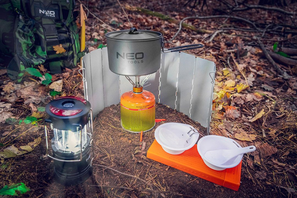 A NEO elemes kempinglámpa (ref. 99-030) egy 3 az 1-ben termék - lámpa, zseblámpa és figyelmeztető fény. 3 világítási funkcióval rendelkezik: zseblámpa, lámpa, piros figyelmeztető fény. A lámpa 200 lumen fényáramú és 3 W teljesítményű COB LED-ekkel van felszerelve. A lámpa kihúzható szerkezettel és mágnesekkel rendelkezik a talapzatban. Ezenkívül 2 fogantyúval rendelkezik: oldalsó és felső, ami növeli a funkcionalitását. 3 AA elemmel működik (nem tartozék).
