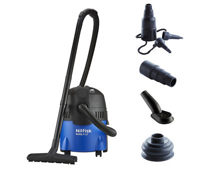 A Nilfisk Buddy II 12 egy kicsi, könnyű, mégis erőteljes segítőtárs, mely alkalmas száraz és nedves törmelék felszívására is.