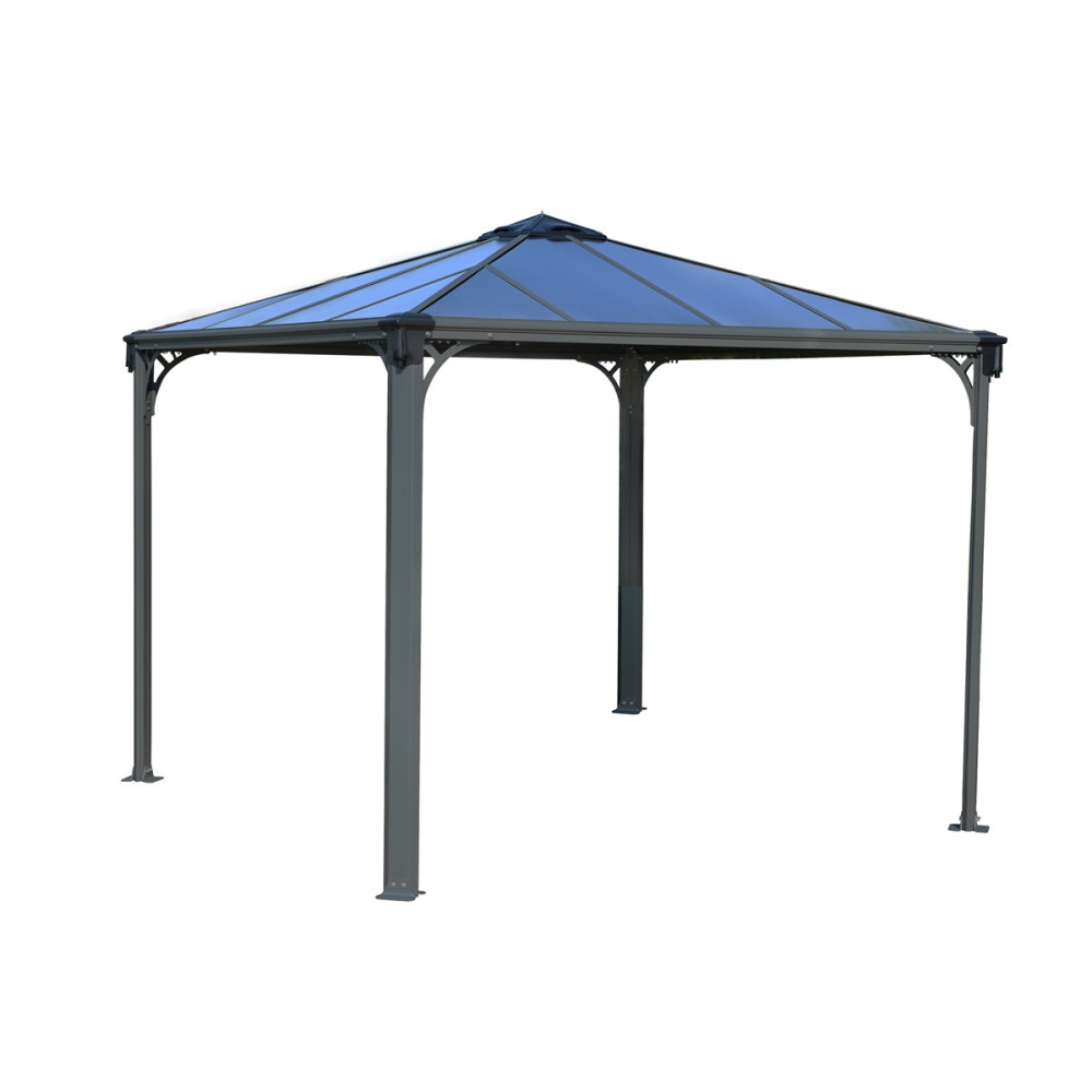 - A tető elegáns bronz árnyalata és az antracit színű keret tökéletesen illeszkednek a kerti környezethez.