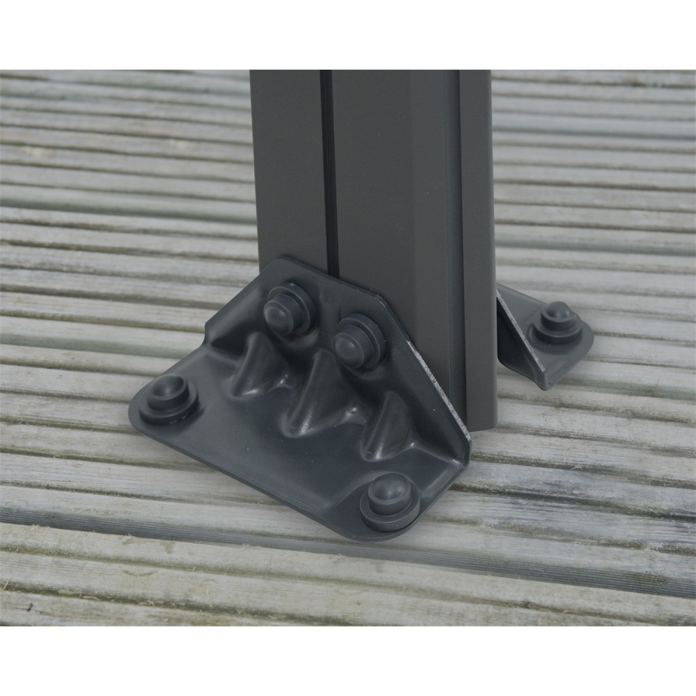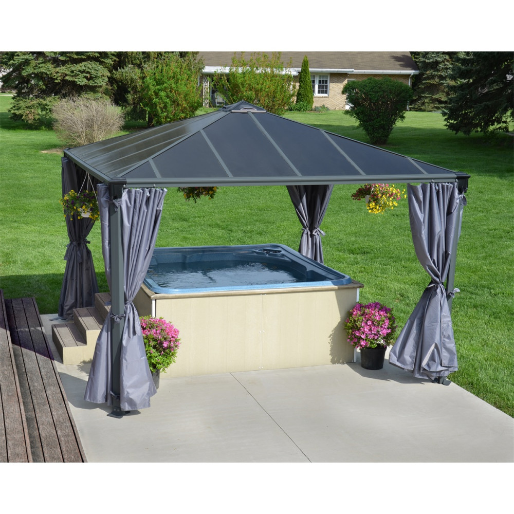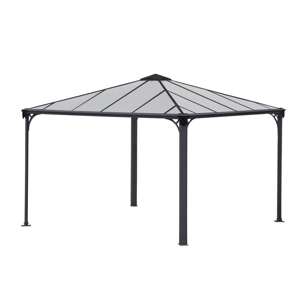 - A tető elegáns bronz árnyalata és az antracit színű keret tökéletesen illeszkednek a kerti környezethez.
