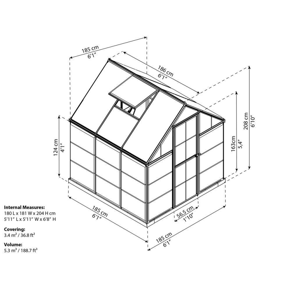 Az új, csúcsminőségű Hybrid termékcsalád üvegházaiban ötvöződik az oldalsó paneleknek köszönhetően, a letisztult és gyönyörű üvegre hasonlító kivitel, a robusztus konstrukció, valamint az egyszerű összeszerelés a tökéletes használati tulajdonságokkal. - A gyakorlatilag törhetetlen csúcsminőségű Palram polikarbonát falak és a kamrás polikarbonát tető biztosítják az üvegházban az optimális hőmérsékletet, és védik a növényzetet a közvetlen napsugárzástól. - A polikarbonát panelek egyedi és egyszerű rögzítése az alumínium profilokban, külön rögzítő elemek használata nélkül történik. - A rozsdamentes konstrukció erős alumínium profilokból áll. - A termékcsomagolás masszív és biztonságos, benne van az áttekinthető szerelési útmutató és az összes összekötő elem. - A tetőpanel dupla falú üregkamrás polikarbonát, amely védelmet biztosít az erős napsugarak ellen. - Az oldalsó panel víztiszta polikarbonát, amely 90%-os fényáteresztést biztosít még a rosszabb fényviszonyok esetén is. A nagy, pántos ajtó jobb és baloldalon is felszerelhető. A táblák egyszerűen rögzíthetők a kerületi profilokban. A csúcsminőségű konstrukció és az anyagok ellenállnak a szélnek, a hónak és a jégesőnek is. Mágneszáras a reteszelés a nyitott ajtónál. Zárható az ajtó. Egységesek a konstrukciós elemek a könnyű kezelhetőség és karbantartás érdekében. Egy vagy két darab ( 6' x 12' típusnál) nagyméretű a szellőző tetőablak. A nagyméretű 6' x 12' típusnál kiegészítő merevítők is találhatók. Magas a felszereltsége - Hatékony szellőztetés és vízelvezetés. - A nagy belmagasság biztosítja a kényelmes mozgást. - Karbantartásmentes, több tízéves az élettartama. - Kényelmes nagy ajtóval rendelkezik mágneszáras reteszeléssel. Hosszú élettartam és tartósság - Gyakorlatilag törhetetlen, csúcsminőségi polikarbonát panelekből épül fel. - Az UV szűrő megvédi az üvegház belső terét. - A 100%-kos UV védelem megvédi a paneleket a törékenységtől és besárgulástól. . Acél horganyzott alapzata van. - Egyedi konstrukció, ami erős, rozsdaálló alumínium profilokból áll. Maximális biztonság - Könnyű, törhetetlen polikarbonát panelekből áll. - Nincs üveg, amely összetörhet vagy megrepedhet. Könnyű összeszerelés és minimális szervizigény - A panelek rögzítése az alumínium profilokban egyedi megoldással további rögzítő elemek használata nélkül történik. - Az összeszerelési útmutató lépesről lépésre áttekinthető. - A Palram üvegházak egységes szerkezeti elemekkel rendelkeznek, így több év után is problémamentes a pótalkatrészek cseréje. Csomagolás - Kompakt, könnyű és nagyon tartós a csomagolása. - Ideális az e- kereskedelem útján történő megrendelésnél is. - Az egyéb típusok 2 kisebb csomagban vannak. Opcionális tartozékok Egészítse ki az üvegházát az igényeinek megfelelően, és nevelje a növényeket még hatékonyabban, könnyebben és kényelmesebben!