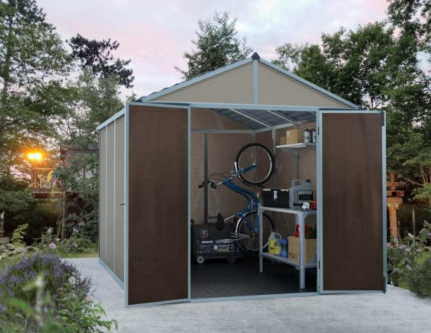 A kerti tároló 100%-os UV védelmet biztosító csúcsminőségű, erősített polikarbonátból készül,