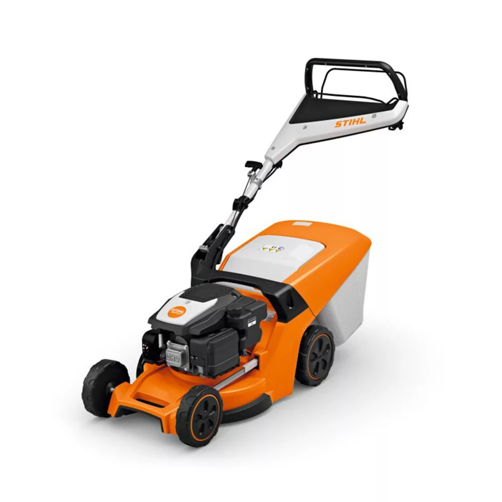 Kompakt benzinmotoros fűnyírógép 41 cm-es munkaszélességgel, közepes méretű füves területekhez. Központi vágásmagasság-állítás, nagyon puha markolat, QuickFix gyorsrögzítők, könnyen gördülő kerekek, fix sebességű kerékhajtás. Felhajtható fedelű, telítettségjelzővel ellátott, 55 l-es fűgyűjtő kosárral.