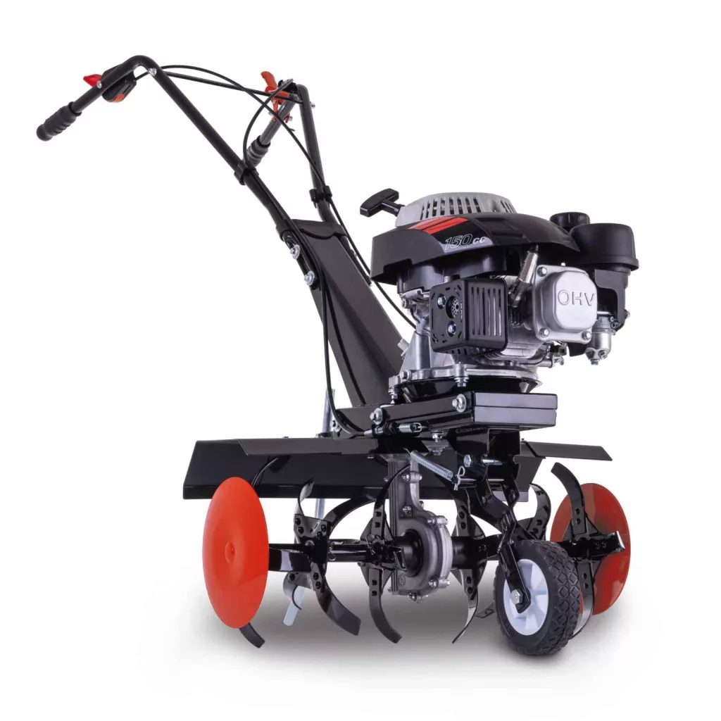 A Scheppach MTP 560 benzinmotoros kapálógép ideális segítőtárs a hatékony talaj-előkészítéshez ültetés előtt, a talaj lazításához, az ásás utáni talajlazításhoz, valamint a műtrágya, komposzt vagy más tápanyag talajba való bedolgozásához. Kompakt kialakításának és könnyű kezelhetőségének köszönhetően tökéletes a kisebb és közepes méretű területeken dolgozó hobbi kertészek számára. A megbízható teljesítményt egy 2,7 kW-os (3,7 LE) motor és egy kiváló minőségű alumíniumötvözetből készült hajtómű biztosítja. A gép 24 db, 260 mm átmérőjű kapataggal van felszerelve, amelyek oldalsó védelemmel rendelkeznek, hogy megvédjék mind a kezelőt, mind a növényeket. Az 560 mm-es (vagy 36 cm-es, a külső kapatagok eltávolításával) munkaszélesség lehetővé teszi a nagyobb területek gyors megmunkálását, míg a 26 cm-ig állítható művelési mélység teljes kontrollt biztosít az eredmény felett. A kényelmes munkát az ergonomikus fogantyú és a merev, alacsony vibrációjú szerkezet biztosítja. A könnyű áthelyezéshez praktikus szállítókerék is tartozik. A Scheppach MTP 560 így a teljesítmény, a kényelem és a hatékonyság ideális kombinációját kínálja a mindennapi kerti munkákhoz.
