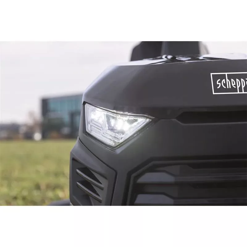 A 98 cm-es vágásszélességű Scheppach benzinmotoros kerti traktor megbízható segítőtárs. Akár 5000 m²-es nagy fűfelületekhez kítűnő választás. A nagy teljesítményű, 12,5 LE teljesítményű és 452 cm³-es, négyütemű motor még a sűrűbb és túlburjánzó növényzettel is megbirkózik, a praktikus elektromos indítófunkciónak köszönhetően pedig gyorsan és könnyedén beindíthatja a gépet. A robusztus, acél kétkéses vágószerkezet tiszta és egyenletes vágást garantál. A vágási magasság kényelmesen, központilag állítható 7 fokozatban 3 és 7 cm között, így az eredményt könnyedén az aktuális körülményekhez és a gyep kívánt megjelenéséhez igazíthatja. A praktikus oldalsó kidobás lehetővé teszi a folyamatos nyírást ürítési igény nélkül, amit különösen nagy területeken vagy magasabb fű nyírásakor fog értékelni. A traktor vonószemmel is fel van szerelve további tartozékok csatlakoztatásához, ami jelentősen bővíti a kertben és a ház körüli használati lehetőségeket. A karbantartást megkönnyíti az üzemóra-számláló és az integrált vízcsatlakozás, amely lehetővé teszi a vágószerkezet gyors és egyszerű tisztítását munka után. A LED-fényszórók jó rálátást biztosítanak a munkaterületre még rossz fényviszonyok között is. Az ülés alatti biztonsági kapcsoló pedig maximális védelmet nyújt munka közben. A nagyméretű kerekek stabil tapadást és csendes menetet garantálnak még egyenetlen terepen is. A folyamatos sebességszabályozás lehetővé teszi a munkatempó rugalmas beállítását - akár 10 km/h előre és 6 km/h hátra, sebességváltás nélkül. A tartós hidrosztatikus váltó sima erőátvitelt, kényelmes irányítást és a teljes gép hosszú élettartamát biztosítja.