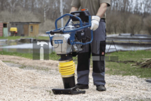 Scheppach VS1000 Vibrációs döngölőgép A VS 1000 döngölőgép kiváló ár-érték aránnyal rendelkezik, és érdekelheti Önt, amennyiben építkezik, karbantartási munkákat végez a ház körül, vagy építési munkákkal foglalkozik. A döngölő kiválóan alkalmas homok, kavics, agyagos vagy vegyes talaj tömörítéséhez olyan helyeken is, ahol más géppel nehezebb dolgozni, úgymint a házfalak mentén, közműépítéseknél, építési munkagödröknél stb. A gépet nagyon kényelmesen és egyszerűen lehet kezelni a masszív, acélkereten elhelyezett kezelőegységgel. Az acélkeret egyben védi a motort és a sebességváltó érzékeny részeit az esetleges sérülésektől. Az egész gépet rendkívül jól kiegyensúlyozták, ennek köszönhetően nagyon könnyű tartani vele a döngölési irányt munka közben, ami ebben az árkategóriában meghaladja az átlagon felüli értéket. A magas 1000 kg-os ütőerő miatt könnyen alkalmazható bármilyen talajtömörítési feladathoz. A világ egyik legnagyobb motorgyártója által készített motor érzékeny szűrőberendezéssel van ellátva a poros környezetben végzendő munkákhoz, könnyen indítható, csendes, megbízható és gazdaságos az üzemanyag fogyasztása is. A komfortosabb munkavégzéshez a gépkeret hatalmas gumírozott rezgéscsillapítókon van elhelyezve. A görgők a gép tartozékai, amelyek lényegesen megkönnyítik annak mozgatását. Műszaki adatok: